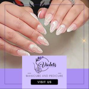 El salón de manicura y pedicura denominado Violet's Nail Salon se especializa en servicios relacionados con el cuidado de las uñas y la piel de las manos y pies. Entre sus especialidades principales se encuentran servicios de manicura, que pueden incluir recortar, aclarar, pulir y esmaltar las uñas de las manos, así como masajes y cuidados para la piel de la mano.